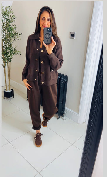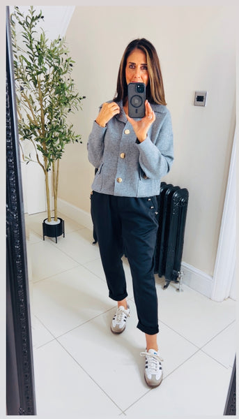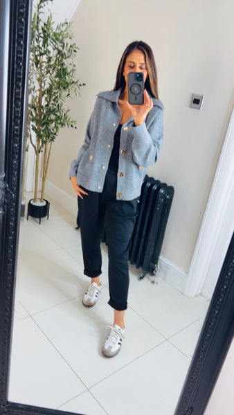 Beautiful quality knit jacket style cardigan with gold popper style buttons